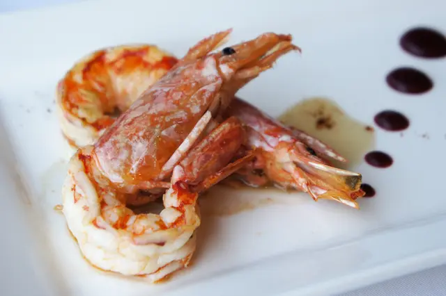 天使紅蝦已經去殼及挑除蝦泥,稍微用刀子一撥就可以把蝦頭分離,完全不沾手好貼心,肉質鮮甜飽滿厚實