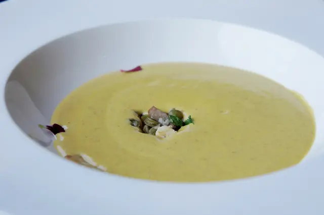 顏色的搭配在視覺上增添不少風采,很有質感的一道湯品