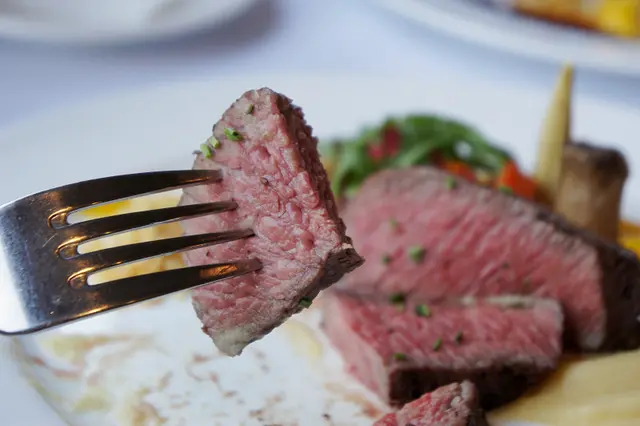 內層肉質鮮嫩多汁搭配豐富大理石花紋,筋很少很好入口,真是牛排中的極品