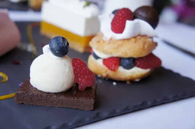 安多尼歐法式餐廳中午時段才有的米其林甜點餐車,提供吃到飽的服務,全部都是師傅當天手工親手製作,堅持低糖重料的手工甜點,味道都來自不計成本的新鮮食材,隨機出餐所以每一次來訪的甜點都不一樣,第一輪一個人可以選擇四樣,想吃可以再續以2個蛋糕為單位,但續點部分就不提供打包服務。