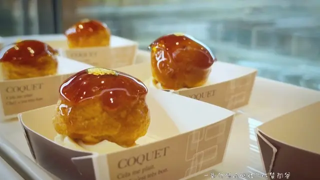 擠上白巧克力,再以焦糖攀附在泡芙之上,裡頭夾帶香甜的柳橙卡士達、討喜的香橙,讓人一吃愛上❤️