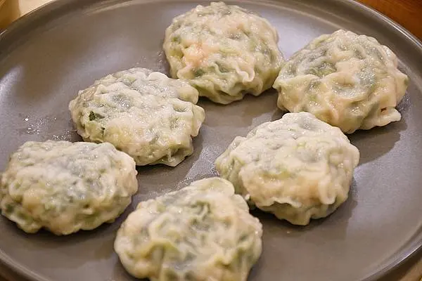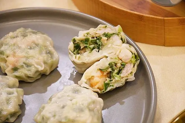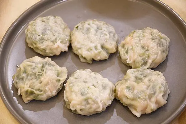 上桌時候的飽滿,讓我嚇一跳,完全好像現點現做的鮮蝦韭菜餅,不因冷凍過後而造成餅皮的破損、蒸煮之後不顯軟爛