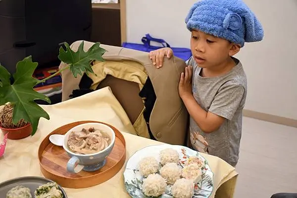 從小到大最喜歡吃的珍珠丸,沒想到小花生也遺傳到跟我一樣超愛吃!等等?以往去吃港點,他明明就是不吃肉、更是不吃蝦,能夠被他欽點的大概只有外面那一顆顆的外衣糯米而已呀!