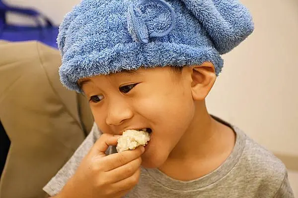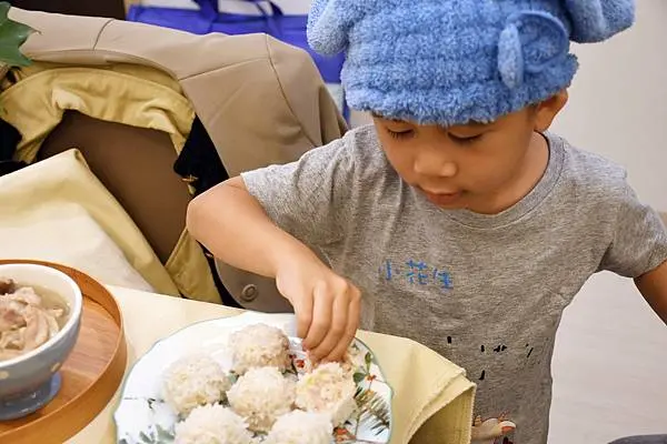 沒錯,這真的不誇張,原本我以為小花生最愛的會是荷葉糯米粽,沒想到六顆珍珠丸子他大哥就吃了四顆,只留兩顆給爹娘(真孝順!)