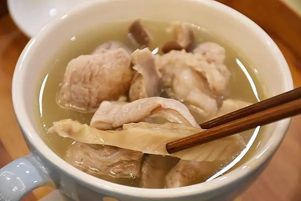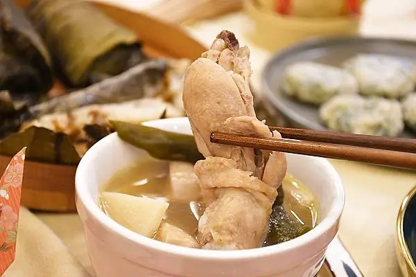 裡面滿滿的料不誇張,超甜的關廟筍搭配上鮮嫩的雞腿肉,每一塊肉都非常的結實又大塊,甚至連一整隻雞腿都看的見