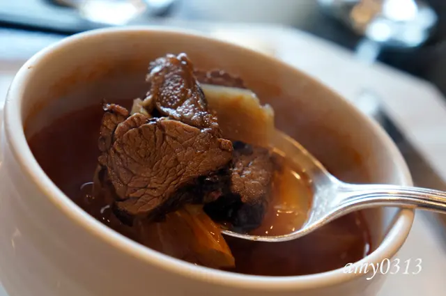 裡頭有著大塊牛排耶~,連羅宋湯都這麼有誠意。羅宋湯的味還蠻不錯的,又濃又香,牛肉也很軟嫩可口。