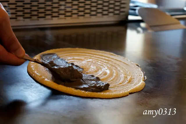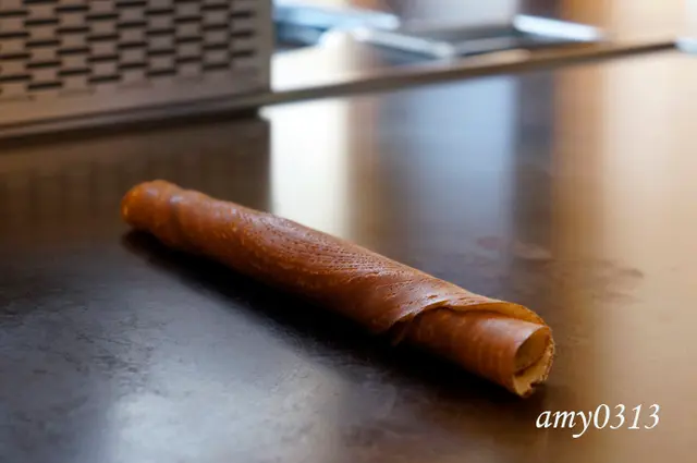 師傅的巧手三兩下在鐵板上舞動,輕輕鬆鬆地就做出了漂亮的芝麻卷耶~。