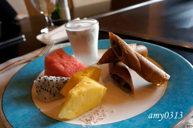 這個芝麻卷好好吃哦,一入口就嚐到濃郁的芝麻香,真的很棒,配上一旁香甜多汁的水果,真是令人滿足又滿意的ending。