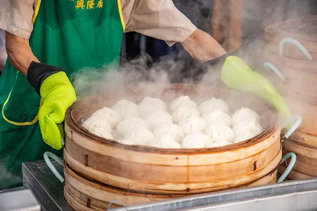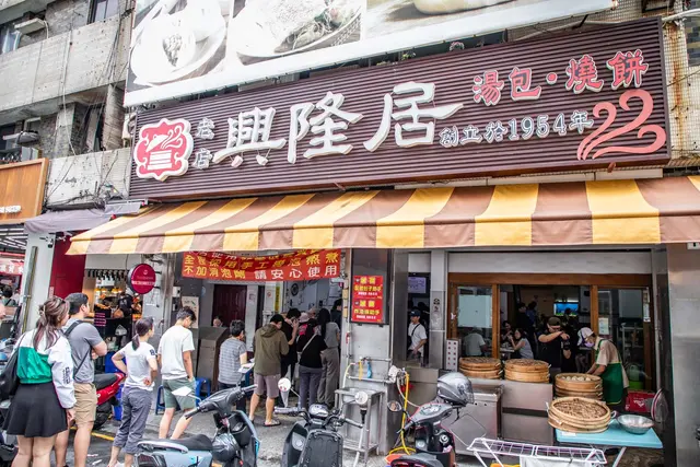 興隆居位置在六合二路接近自強一路口,比較靠近高雄捷運市議會(舊址)站,早上4點半就開門一路賣到中午11點半,排隊人潮幾乎是全天候,有時候甚至直接排到大馬路上,然後排隊有分專買湯包的跟燒餅+湯包的兩列,注意不要排錯了唷