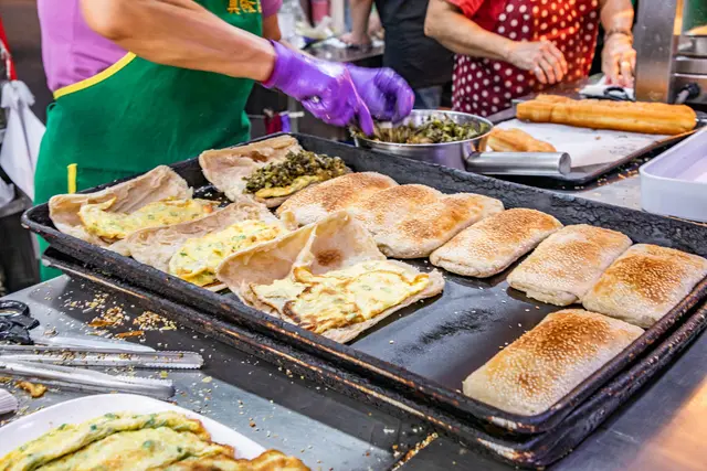 興隆居的招牌之二就是燒餅了,可以隨自己喜好加料,大部分就是大全套:油條、蔥蛋、酸菜全加,一套70元,份量也是極大,阿姨們包燒餅的速度也是非常快,但有時候油條賣光了,要等新一鍋起鍋可能要等一下時間