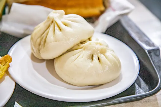 湯包,雖然叫湯包,但外觀比較像包子,湯包裡面主要是包高麗菜肉餡,感覺上高麗菜跟絞肉的比例大概半半,咬下去真的有湯汁,建議先咬個小洞吸一下湯汁,不然很可能一不小心就從旁邊比較薄的地方噴出來,包子皮蠻甜的,搭配清爽不油膩的內餡,是好吃的包子