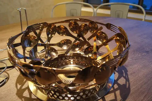 非常有巧思的以湯匙&叉子做成的"鍋架"~