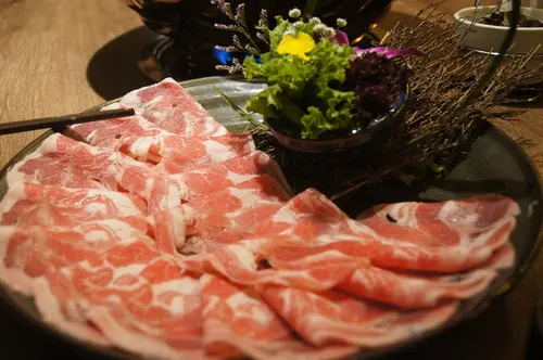 看這涮過後帶一點粉紅的安格斯霜降牛肉