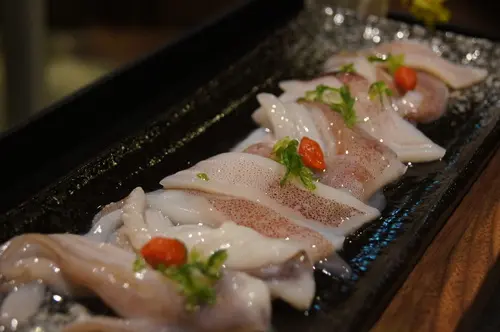 墨魚咬起來Q彈,金箔干貝咬下去有一絲一絲的感覺~