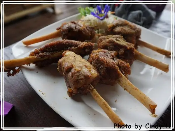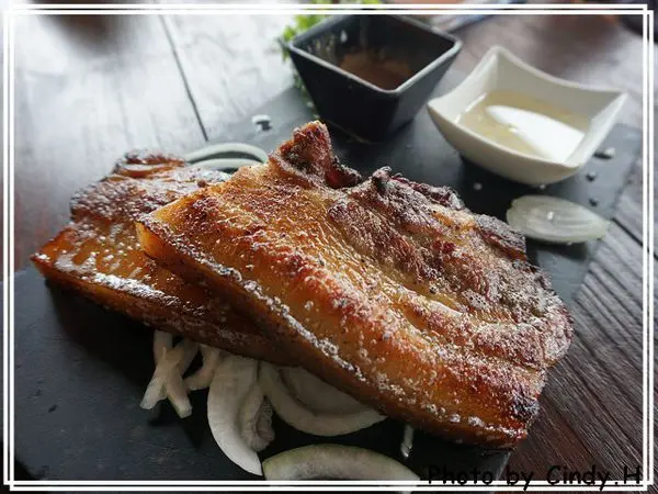 超級無敵大推這個烤肉的,利用高溫把油脂完全逼出來,入口沒有一絲的油膩感,只有QQ的口感以及肉烤過後的香氣,非常好吃阿!! 附的蘸醬是蒜頭醋水,是很經典的原住民搭配醬汁,沾著吃非常清爽唷!!