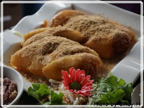 銀絲卷油炸之後淋上一點糖漿及花生糖粉,吃起來就是甜甜又香酥,還滿好吃的