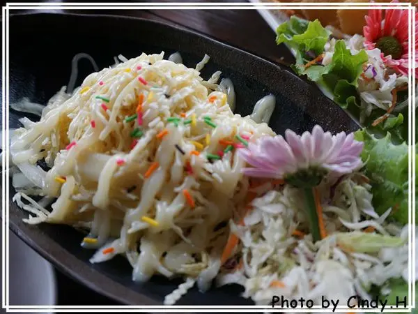 偏冷的食材檳榔花,似乎都要在山產料理店才會出現,吃起來脆脆的帶點清甜,上頭的美乃滋跟巧克力米實在是多餘了