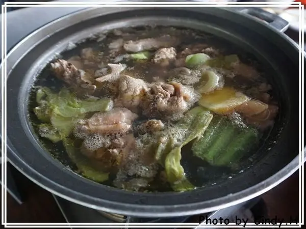 以卦菜和土雞為底敖的湯,裡頭還加了番薯和蛤粒,喝起來帶點苦味,滿妙的