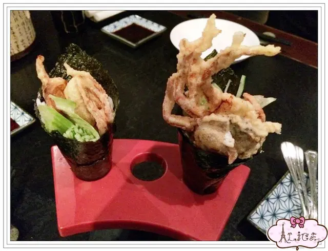似乎是炸過的鰻魚配上淡淡的酢汁~也可以沾點芥茉。
