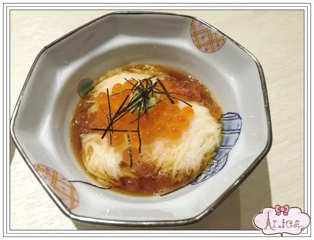 吃起來好滑溜好清爽。 配上新鮮的鮭魚卵,感覺變成高級的菜肴了。