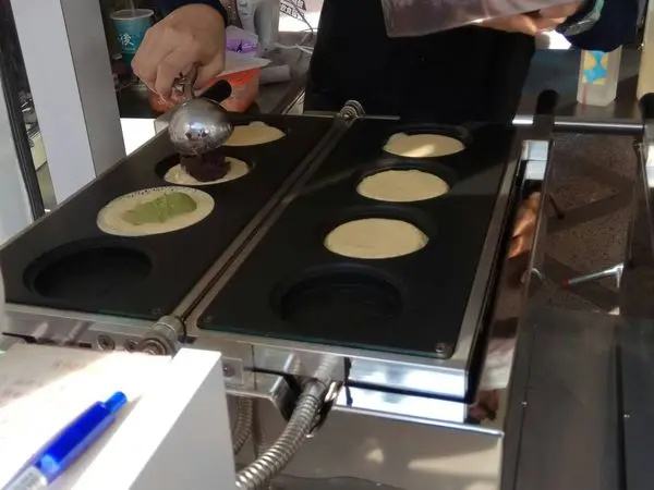 看著滿滿的餡料就這樣放入扎實而且濃郁的粉漿裡面