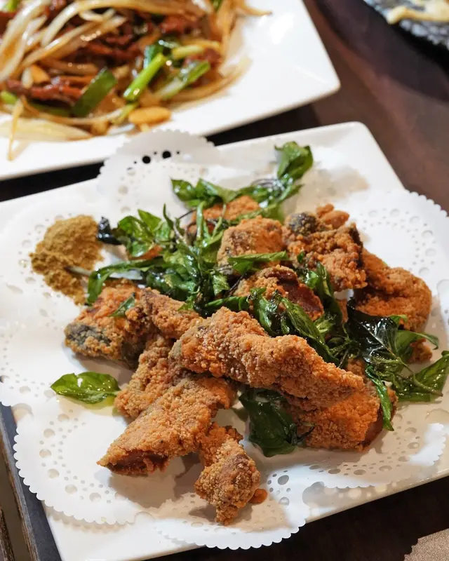 ▼炸紅糟鰻!這不是一般人愛點的菜!不過卻是我們必點的一道!因為紅糟的獨有香氣,炸得酥酥的,沒有臭土味,讓我們家女兒從不敢吃魚到愛上這道美味料理!不得不說廚師真有創意!