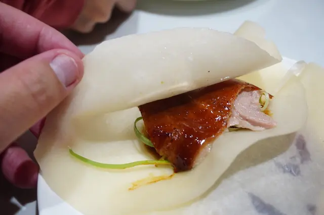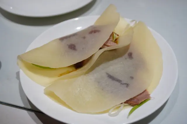 飯店吃烤鴨, 飯店服務人員會幫忙把鴨皮捲起來
