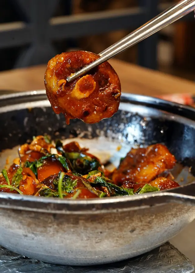 ▼三杯牛尾是一道充滿豐富風味和口感的美食,讓人一試難忘。主角是嫩滑的牛尾肉,牛尾肉經過長時間的燉煮,使得肉質軟爛、入口即化,並帶有濃郁的牛肉香氣。經過燉煮後的牛尾肉外表呈現金黃色澤,將醬汁融入肉中,吸收了醬汁的精華。微妙的酒香,在入口的瞬間,肉質的柔軟和醬汁的香氣將彼此交融,搭配香噴噴的白飯,絕對能夠讓人食指大動,嘴角洋溢著滿足的微笑。