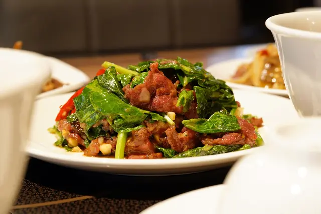牛肉經過快炒處理,保持了肉質的嫩滑和多汁。牛肉帶有獨特的牛肉香氣,與芥蘭的風味相得益彰。這種搭配讓芥蘭炒牛肉成為一道極具飽足感的菜餚,能夠滿足人們對於美味牛肉的渴望。雖然菜色大眾,但要炒得好吃也需要有一定的功力!