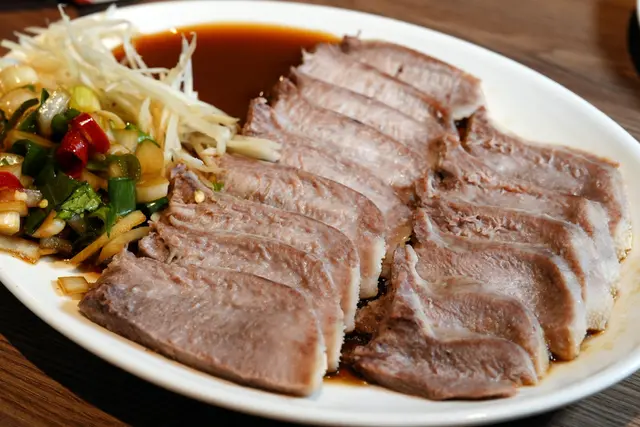 首先!200元這價格直覺上就是薄薄的牛舌切片鋪一鋪,沒想到每片都非常厚實,吃起來超級過癮。絕對是吃牛舌的新體驗,搭配醬油膏一起,感覺是一個極具奢侈的小吃,但他真的只賣200元。