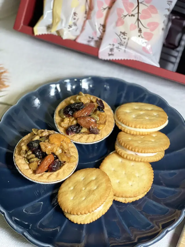 ▼第二款是牛軋餅混搭堅果塔,牛軋餅口味有牛奶和蔓越莓,鹹甜鹹甜的很唰嘴,堅果塔料滿多的,塔皮也是濕潤鬆軟,整體搭配吃起來很香。