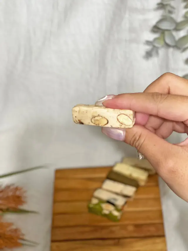 ▼抹茶牛軋糖吃起來就是抹茶歐蕾,抹茶香和奶香並行;焙茶牛軋糖吃起來茶味就比較重一點,我覺得會更對老人家的口味,像我爸就滿愛的。