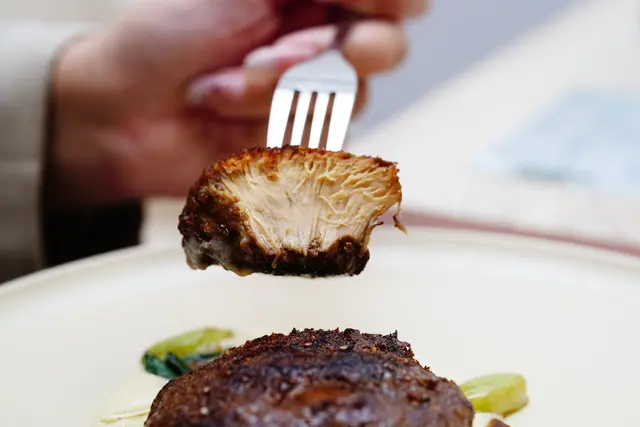 全素照燒醬炭烤猴頭菇排,口感扎實、風味濃郁,搭配老梅子醬汁,以老梅子+20多種蔬菜經過至少三天時間熬煮,滋味非常濃郁!