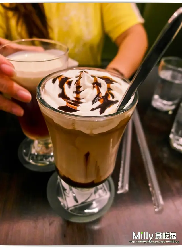 底層是巧克力醬,加上咖啡和鮮奶油,攪拌後可以喝到濃濃的巧克力香佈滿口中~