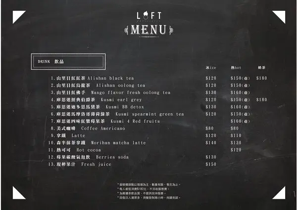 低消180元非常容易就達到, 因為飲料都在一百多塊左右, 蛋糕也是...