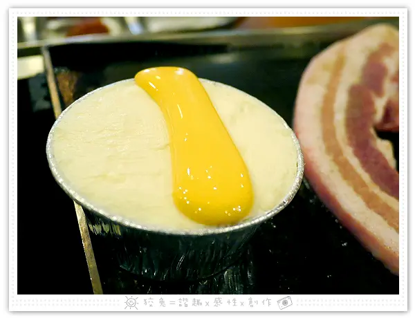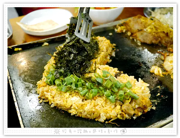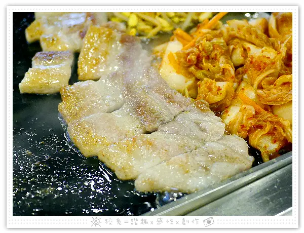 烤盤邊的兩種配菜是店家奉送的,第一次免費,想再續就要付費~~