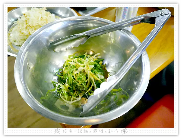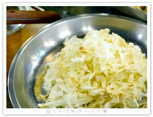 高麗菜絲的出現是為了體恤不吃蔥的朋友!淋上胡麻醬,相當爽口!