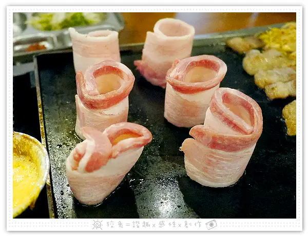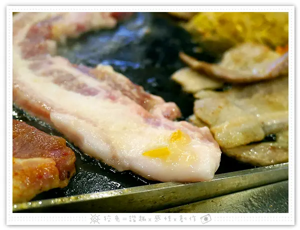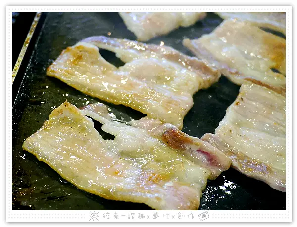 然後他幫我們疊上一塊剛烤好的三層肉,狡兔已經準備張大嘴巴迎接......