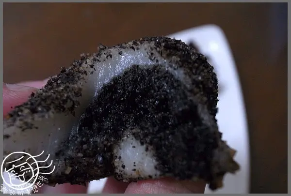 唷~這個我喜歡耶,因為裹著的是花生粉所以沒有上面那兩種粉的厚感,當然也增加了不少香氣,內餡的花生很飽滿甜度挺夠的耶,整體上是香Q的口感,還算蠻好吃的!