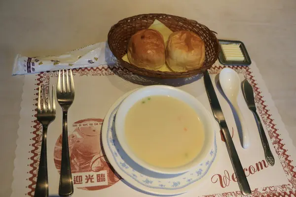 因有事先預約,才點完餐沒多久,我的濃湯與餐包就送上來了。