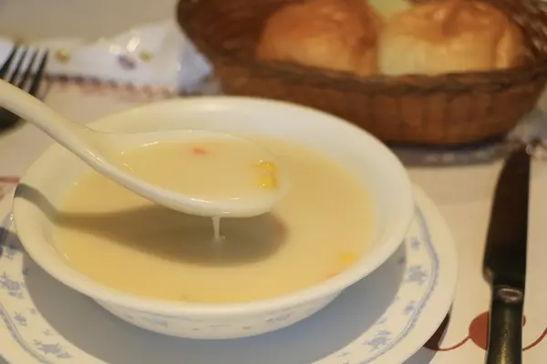 早期濃湯有3種選擇,玉米濃湯比較大眾化又是常客必點,為避免遠來的常客吃不到會想念,現在固定推出玉米濃湯。