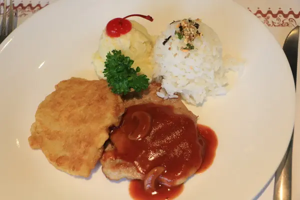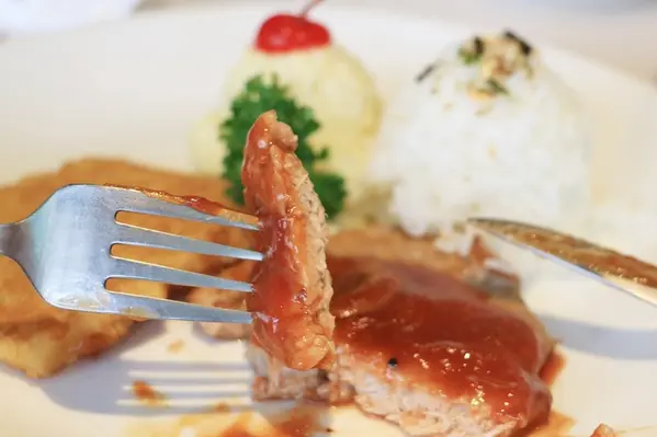 招牌餐是由豬排與魚排組成,也就是現在俗稱的海陸雙併。