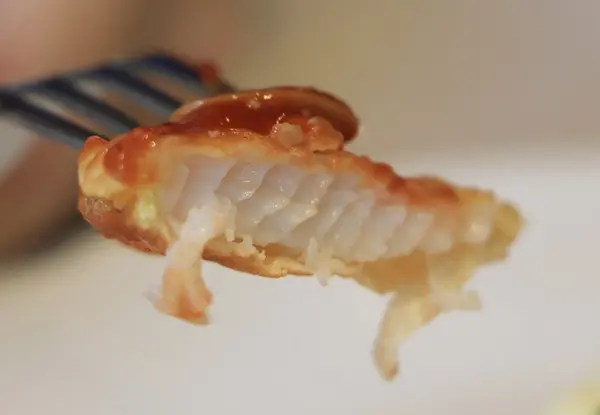 魚排裹上淡淡的蛋液微煎,肉汁全都鎖在裡面了,大口咬下還吃到鮮甜肉汁,肉質也很細嫩,很對我的胃口。豬排與魚排雖不是超大份量,另外還搭配一球白飯與洋芋沙拉,足以讓我吃飽,也不用吃撐。