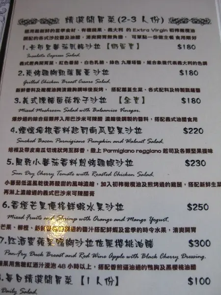 我們另外加了180元點了附餐, 有開胃菜或麵包加湯 (二選一), 飲料四選一, 和奶酪