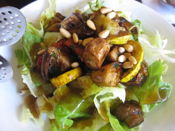 蔬菜很清脆, 陳醋調味很開胃, 菌菇有先炒過, 吃得到鮮味, 點綴的松子有畫龍點睛的效果,