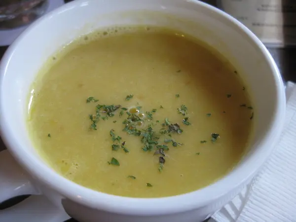 今日例湯是玉米湯, 非常好喝, 有玉米顆粒和不知名的豆粒, 湯頭很棒~