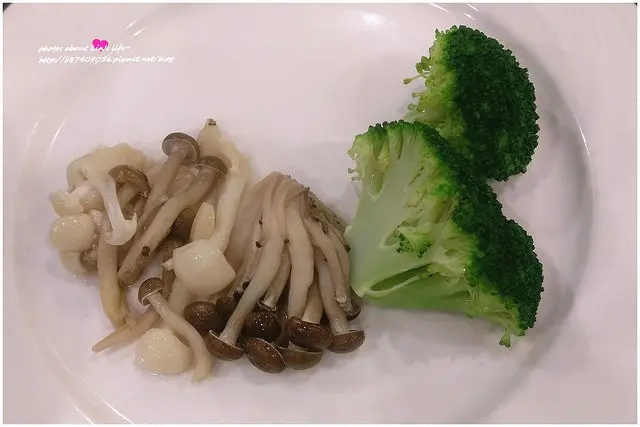 蔬菜中快熟的菇類和綠花椰先下鍋 沒調味所以預想會清淡但沒想到新鮮的原味意外地好吃