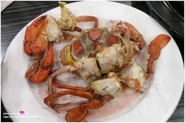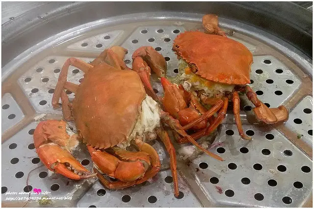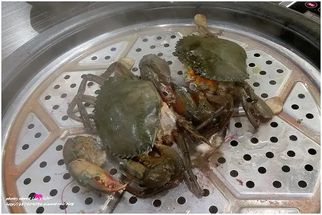 正忙著吃時鍋裡的紅蟳正上演由綠變紅的蒸煮live show 還能看到橘黃的蟹膏從蟹殼底下探出頭!
