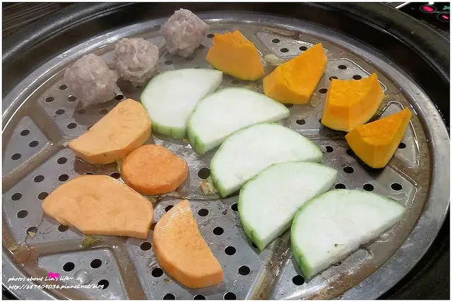 沒調味過的高麗菜和瓜類完全吃原味 清淡的菜味和瓜甜很健康的fu 旁邊芋頭丸還咬得到芋頭塊呢