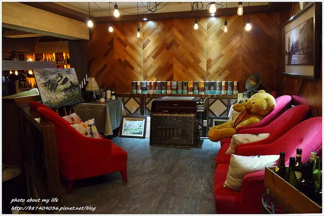 大紅沙發椅和毛茸茸大熊的舒服感好溫暖 真想改到這用餐(笑)